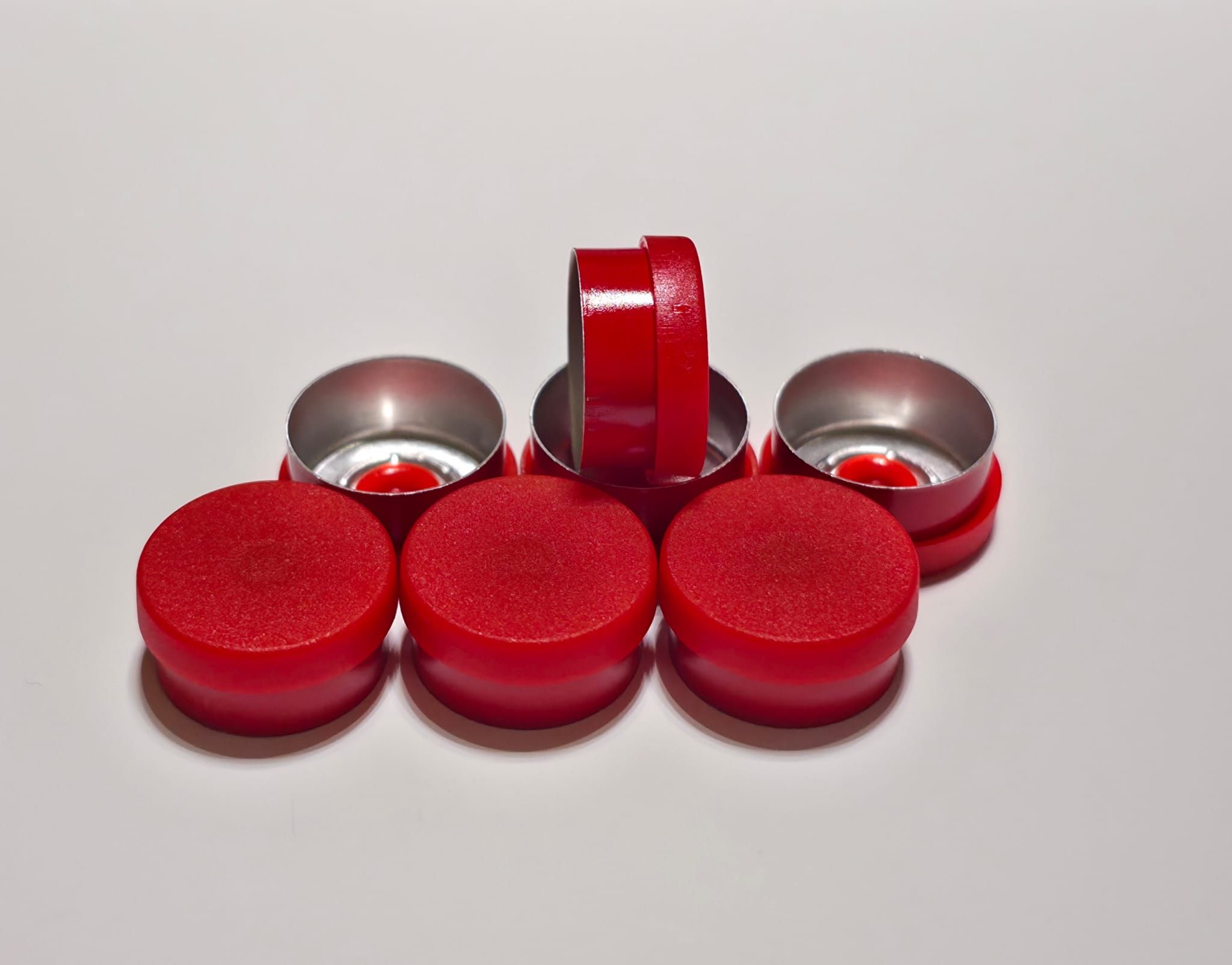 Den stilrena kombinationen av röd aluminiumfinish och rött flip top-lock ger en modern, professionell och distinkt look. Oavsett om du arbetar med läkemedel, forskning, kosmetik eller kemiska produkter, hjälper dessa tätningar dig att bevara innehållets kvalitet och sterilitet.