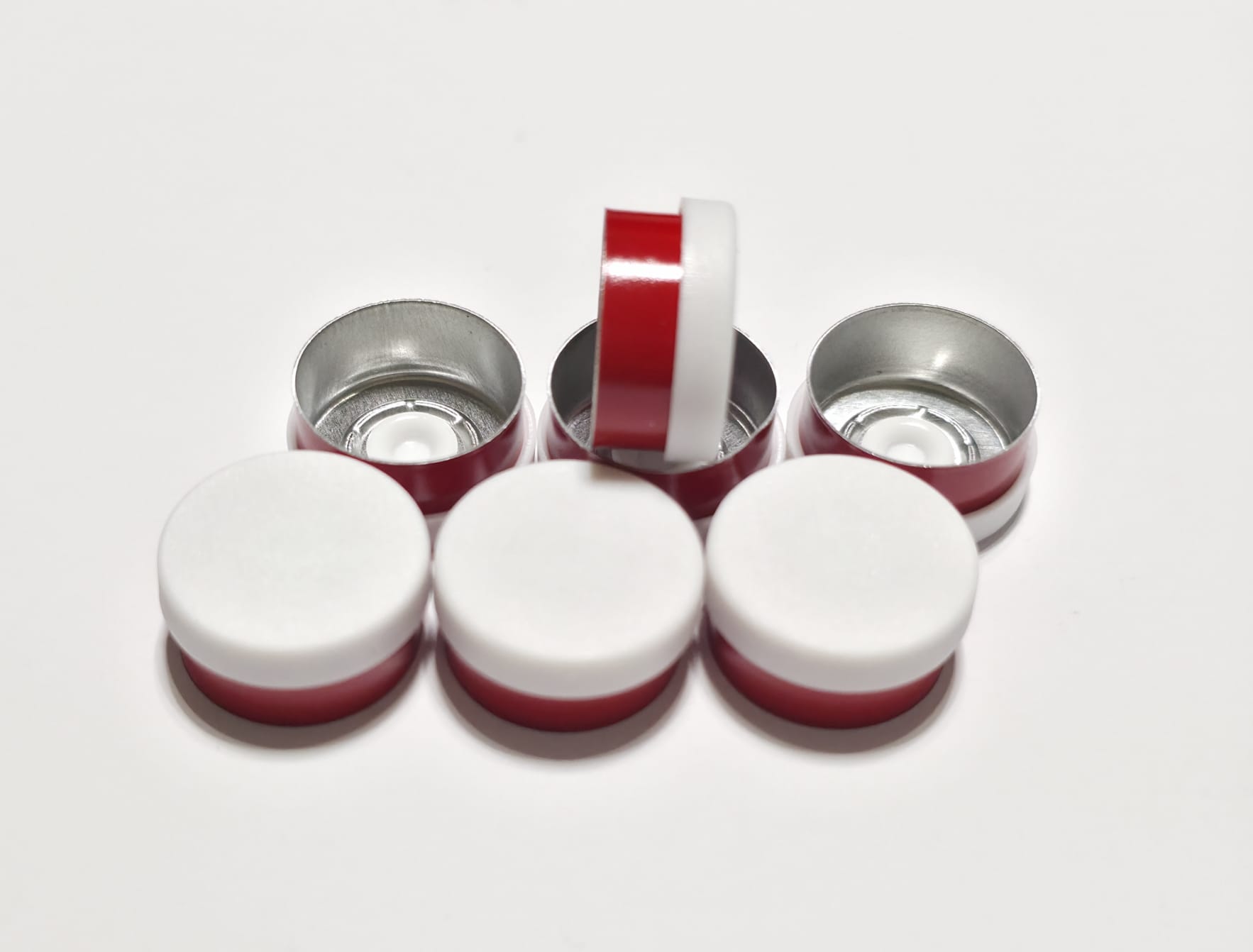 Den stilrena kombinationen av röd aluminiumfinish och vitt flip top-lock ger en modern, professionell och distinkt look. Oavsett om du arbetar med läkemedel, forskning, kosmetik eller kemiska produkter, hjälper dessa tätningar dig att bevara innehållets kvalitet och sterilitet.
